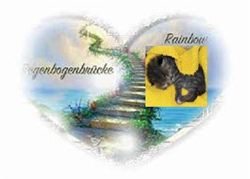 Nachts wusste Ich, dass Ich Abschied von Dir nehmen musste, als Ich Dir sagte, dass du nun über die Regenbogenbrücke mit deinem Engel gehst war Dein Blick hellwach deine Ohren hattest du nach vorn gerichtet die Erleichterung konnte man spüren. Als Ich Dich im Arm festhielt und Du eingeschlafen warst erlosch Dein Licht auf Erden...aber niemals im Herzen. Geliebte Seele Ich danke Dir für die eineinhalb Jahre dir wir zusammen hatten in Ewiger Liebe Deine Baghira, Timmy, Tiffy und Andrea.